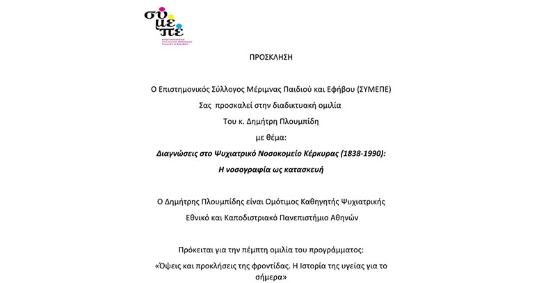 Παρασκευή 28 Μαρτίου 2025: 5η εισήγηση του προγράμματος “Όψεις και προκλήσεις της φροντίδας. Η ιστορία της υγείας για το σήμερα”. Εισηγητής ο ψυχίατρος κ. Δ. Πλουμπίδης 27 Μαρτίου, 2025 Διαβάστε Περισσότερα »
